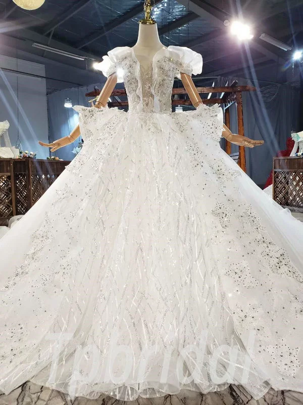 Big ball gown wedding dress haute couture gorgeous off the shoulder hand made bead lace with monarch train white formal bridal gown new arrival