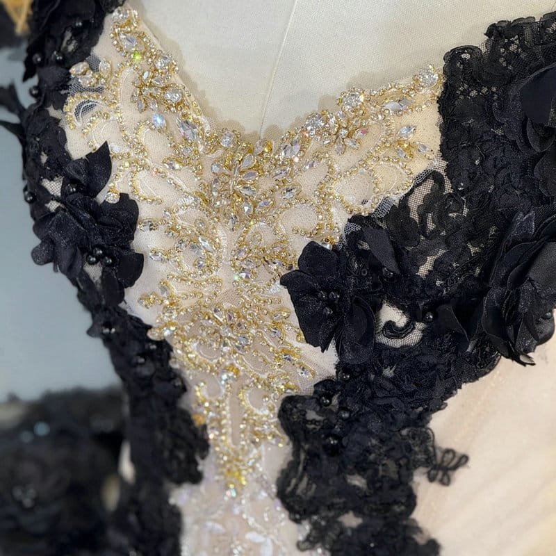 Black and champagne quince dress gorgeous off the shoulder ball gown black lace multi color bridal wedding dress wholesale online for sale.