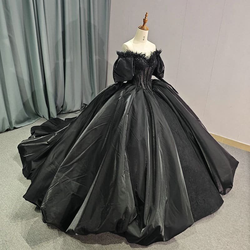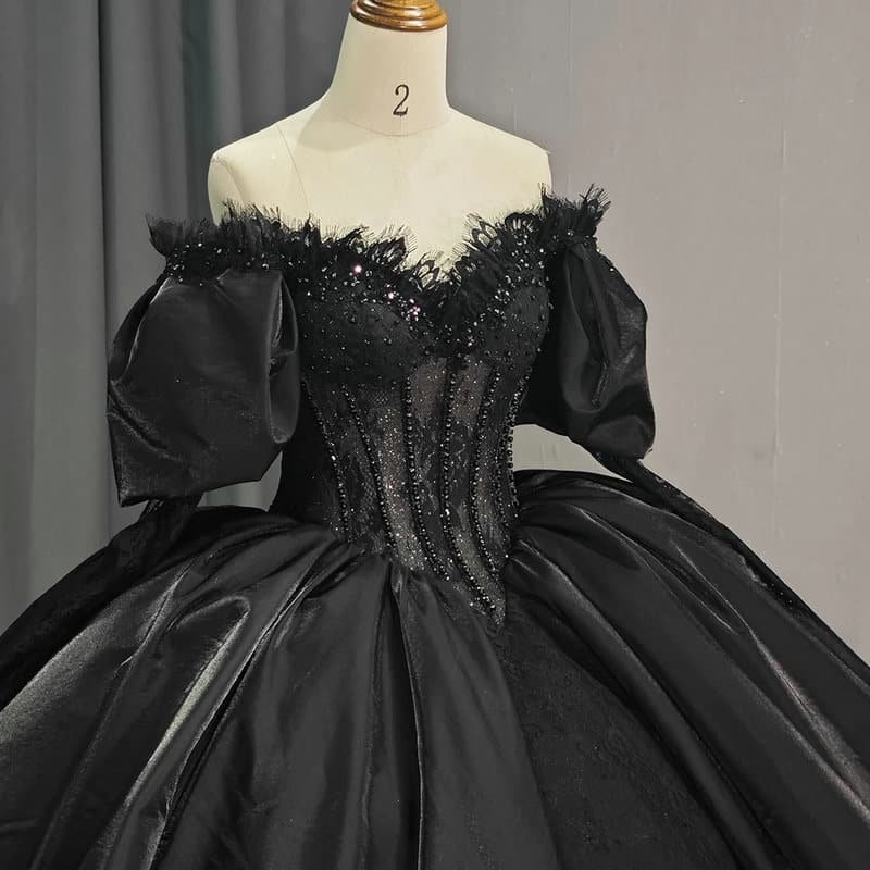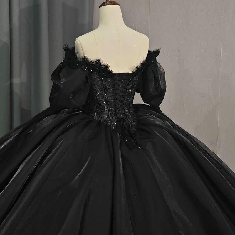 Black quinceanera dresses haute couture sweetheart short sleeves ball gown lace up back unique formal black wedding dress for sale.