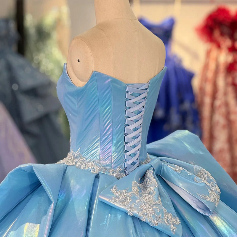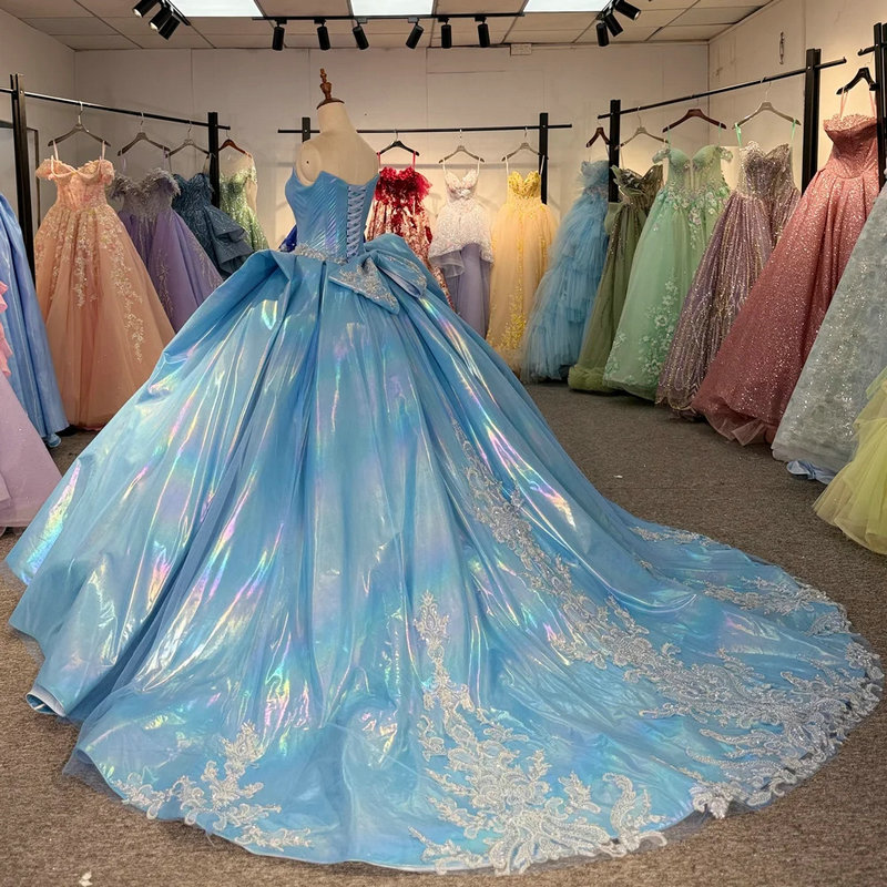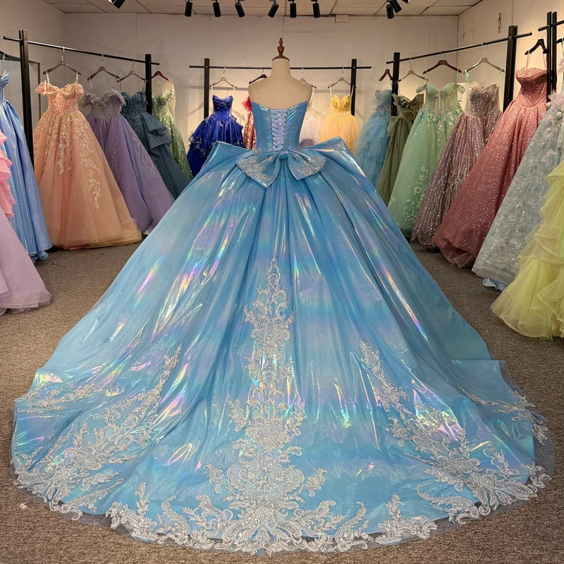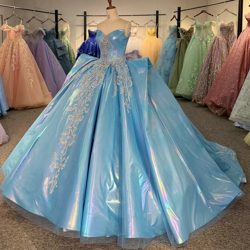 Blue sweet 16 dress gorgeous sweetheart ball gown sleeveless rainlow light beaded lace hand made quinceanera dress wholesale.