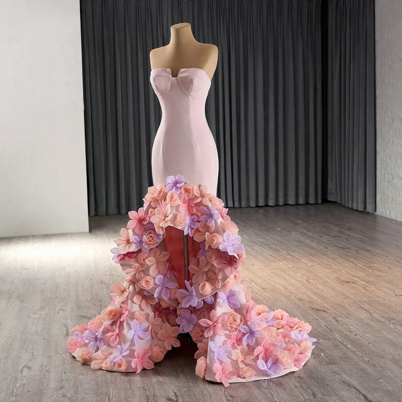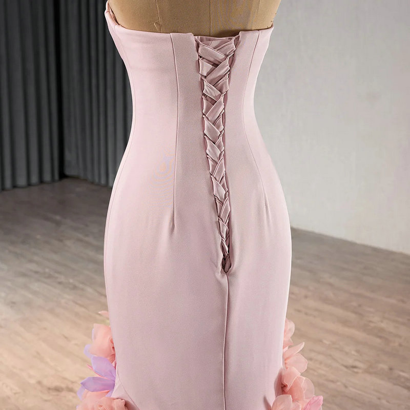 High low evening gown gorgeous hand made sweetheart sleeveless lace up hand made 3d flowers unique purple pink formal party dress for sale.