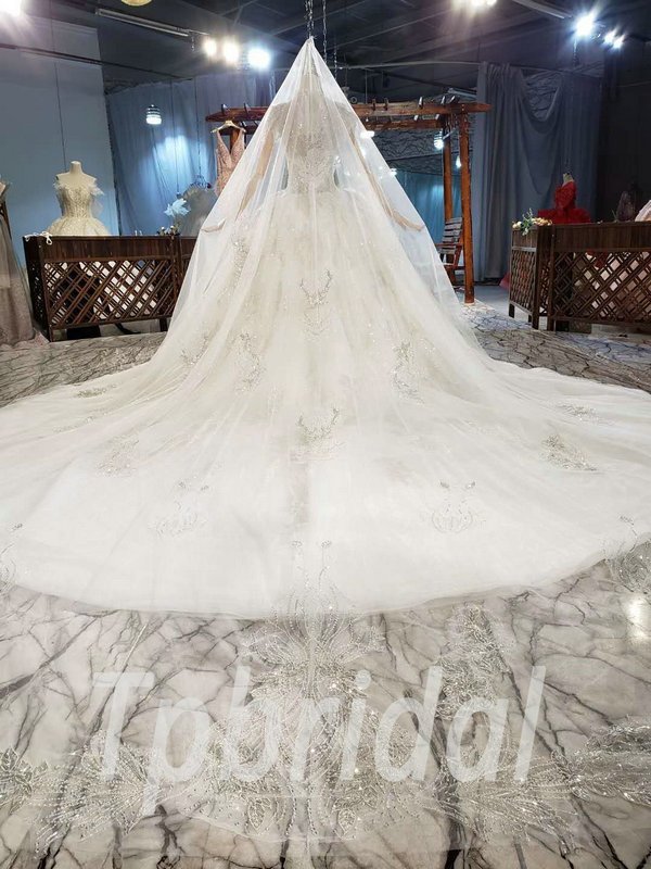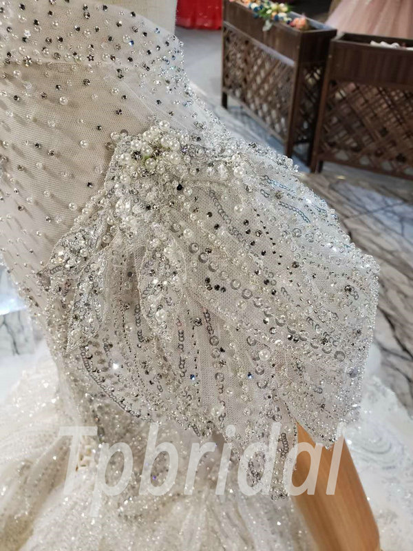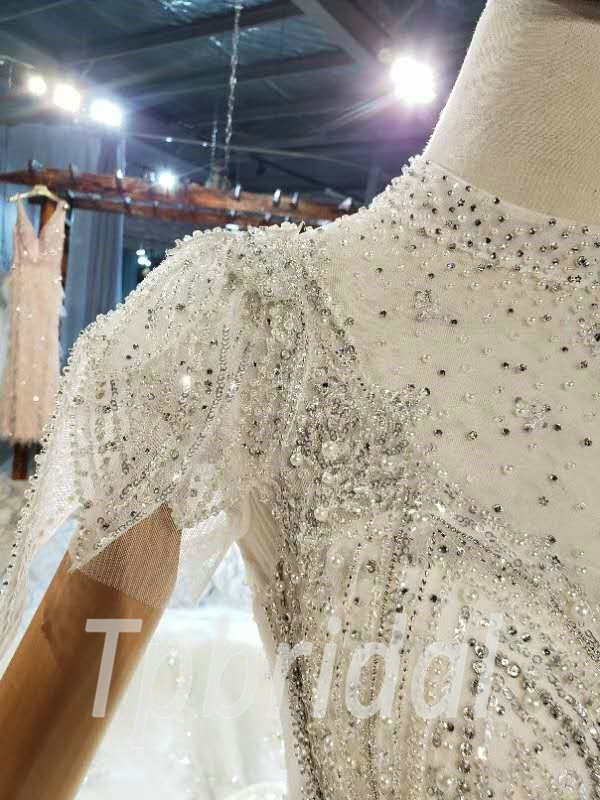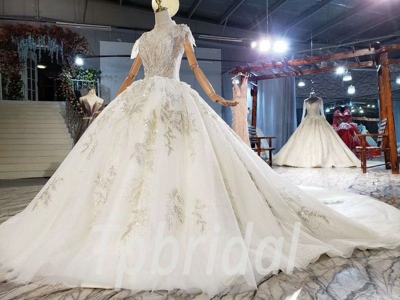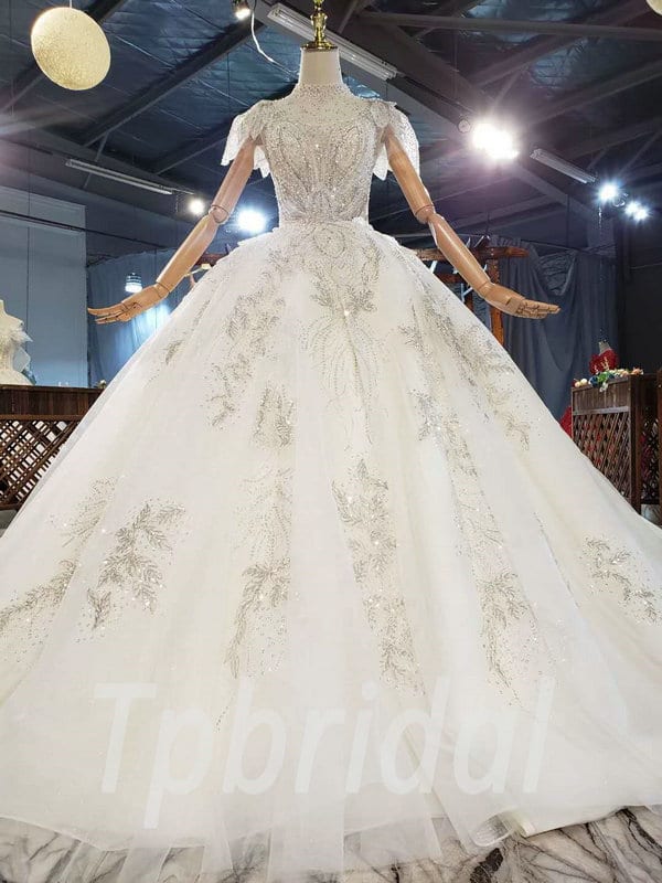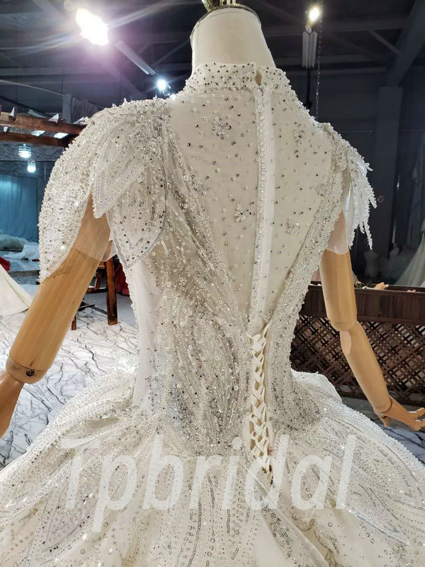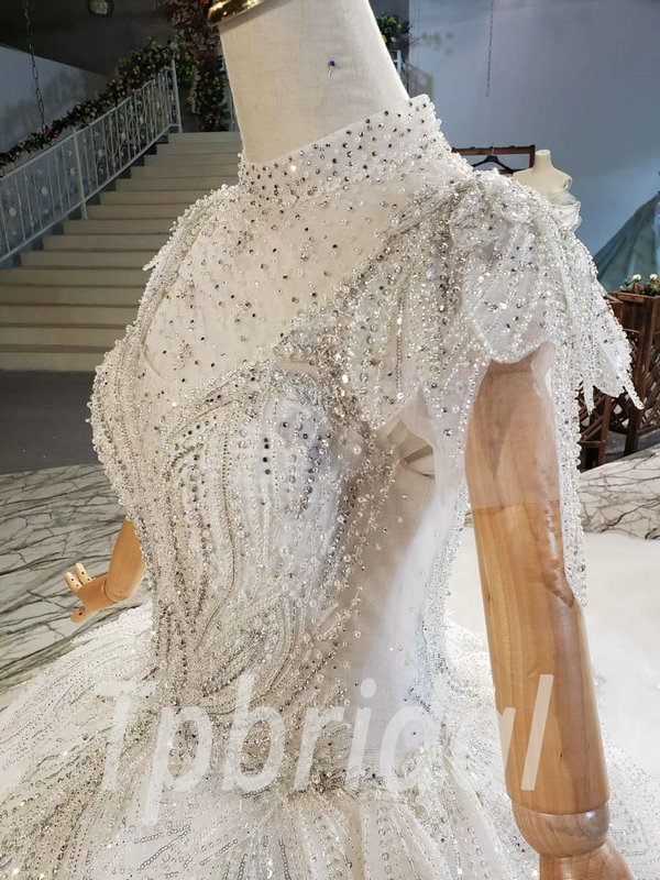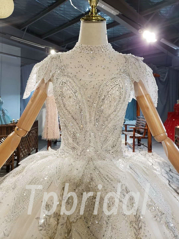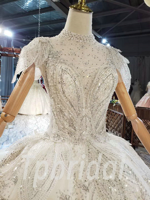 Jewel neckline wedding dress high neck ball gown hand made beaded crystal gorgeous haute couture bridal dress with veil