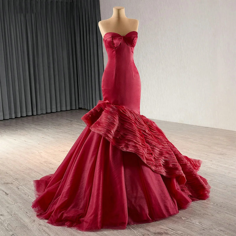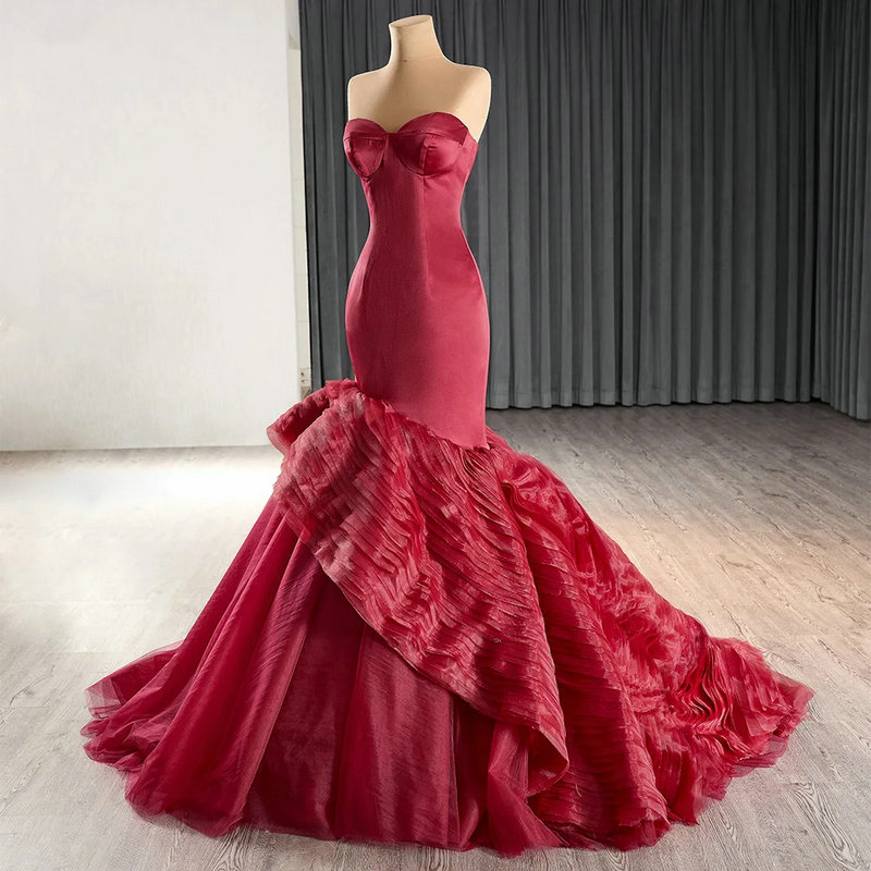 Red Wedding Guest Dress Sweetheart Mermaid Prom Dress