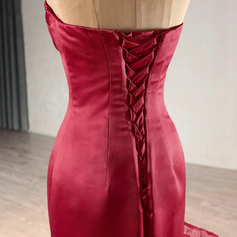 Red wedding guest dress sweetheart mermaid sleeveless lace up evening dress formal prom dress wholesale online for sale.