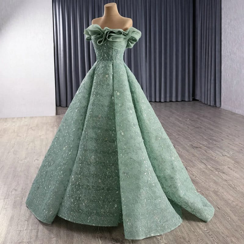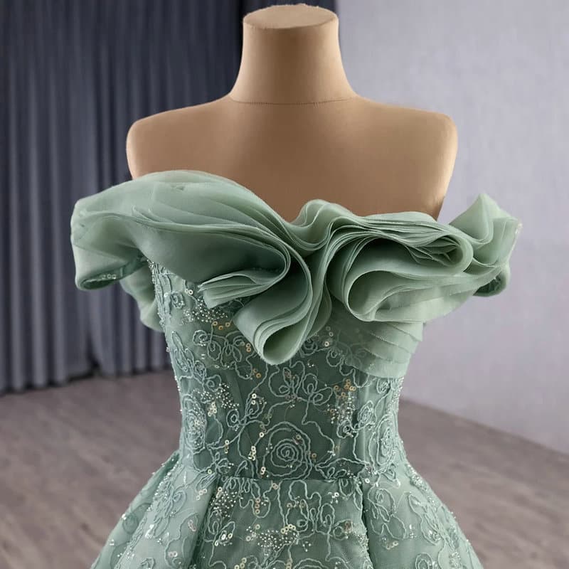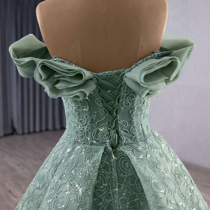Sage green wedding guest dress off the shoulder a line lace up sequins embroidery luxurious lace formal prom dress for sale
